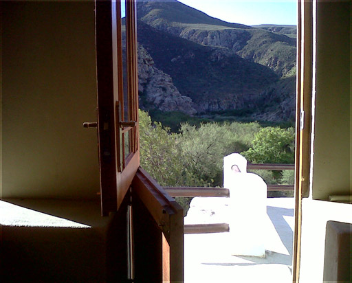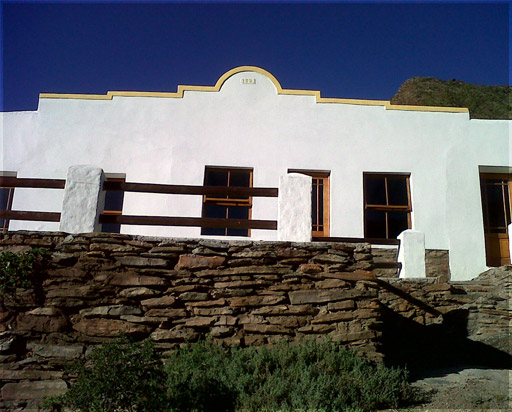 Restored pioneer cottage, dated 1881, closest to the river, nestled on an outcrop at the foot of the Swartberg, with a stunning north facing view of the nearby river and mountains. Bed linen and towels supplied. A warm water geyser as well as a fridge and hot-plate is served by gas; light is provided by solar lamps.